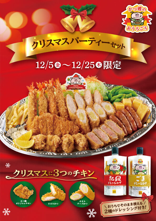 かつ雅オリジナルチキンや和風・ごまドレッシングが付いた、この時期にしかない特別なパーティーセット!