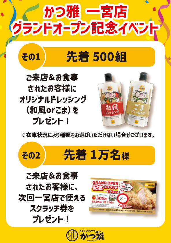 かつ雅 一宮店、本日グランドオープン!